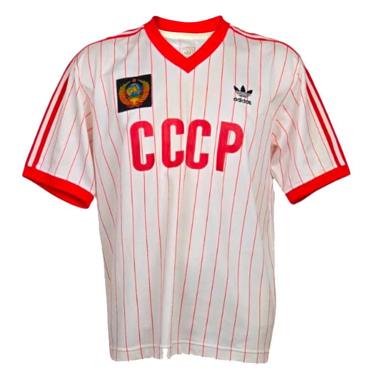 Maglia della Russia World Cup 1980, realizzata da Adidas e divenuta uno dei simboli più riconoscibili del calcio internazionale dell’epoca. Il design presenta una base bianca attraversata da sottili pinstripes verticali rosse, abbinate a colletto a V e bordi manica in rosso vivo, elementi che esaltano l’estetica pulita e rigorosa tipica del periodo. Sul petto campeggia la celebre scritta CCCP in rosso, accompagnata dallo storico emblema statale sovietico e dal logo Adidas trefoil ricamato. Le tre strisce Adidas sulle spalle completano una maglia dal forte valore storico e collezionistico, rappresentativa di una delle nazionali più iconiche del calcio mondiale. Versione Store, ideale per collezionisti e appassionati di maglie vintage e storia del calcio.