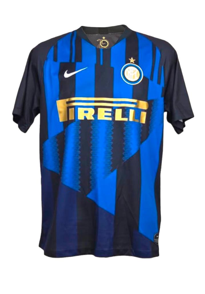 Maglia Home dell’Inter realizzata nel 2019 in edizione limitata per celebrare il ventesimo anniversario, firmata Nike e caratterizzata da un design moderno che reinterpreta le iconiche strisce nerazzurre in chiave grafica e dinamica. Il fondo nero e blu è arricchito da inserti geometrici verticali, mentre il colletto a girocollo presenta dettagli celebrativi interni dedicati all’anniversario. Sul petto spiccano lo swoosh Nike, lo stemma Inter con stella e lo sponsor commerciale Pirelli in elegante finitura oro. Sul retro sono applicati nome J. Zanetti e numero 4 dorati, omaggio al capitano simbolo della storia nerazzurra, con dettaglio del logo Inter integrato nel numero. Una maglia dal forte valore celebrativo e collezionistico, pensata per rendere omaggio a una delle figure più rappresentative del club. Versione Store, ideale per collezionisti e appassionati interisti.