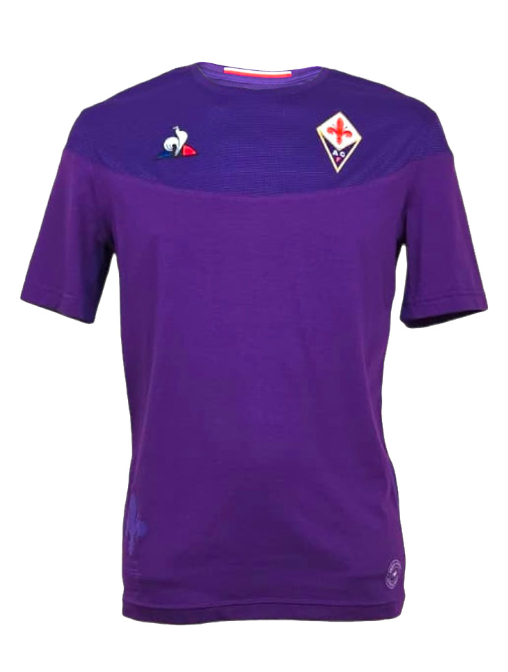 Maglia Home della Fiorentina utilizzata nella stagione 2019/2020, realizzata da Le Coq Sportif e contraddistinta dall’inconfondibile colore viola che rappresenta l’identità storica del club. Il design si presenta pulito ed elegante, con una texture tono su tono nella parte superiore del busto e una fascia più compatta nella sezione centrale, creando un raffinato contrasto visivo. Sul petto trovano spazio il logo Le Coq Sportif e lo stemma ACF Fiorentina con giglio rosso, mentre il colletto a girocollo mantiene una linea essenziale e moderna. Sul retro sono applicati nome Ribéry e numero 7 in bianco, accompagnati dal giglio viola alla base del numero. Una maglia iconica legata all’arrivo a Firenze di uno dei campioni più rappresentativi del calcio europeo. Versione Store, ideale per collezionisti e tifosi viola.