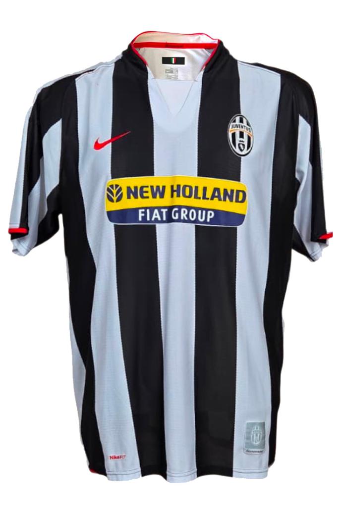 Maglia Home della Juventus indossata nella stagione 2007/2008, realizzata da Nike e caratterizzata dalle iconiche strisce verticali bianconere, simbolo della tradizione del club. Il design presenta colletto a V con dettagli rossi a contrasto e finiture moderne, mentre sul petto sono applicati lo swoosh Nike, lo stemma Juventus con le due stelle e lo sponsor commerciale New Holland Fiat Group. Il tessuto NikeFit garantisce comfort e traspirabilità, tipici delle versioni Store dell’epoca. Sulla manica è presente la patch ufficiale Serie A, a certificare l’utilizzo nel campionato italiano. Sul retro compaiono nome Trezeguet e numero 17 in rosso con bordi bianchi, con stemma Juventus integrato alla base del numero. Una maglia legata a uno dei bomber più rappresentativi della storia bianconera, dal forte valore collezionistico e simbolico.