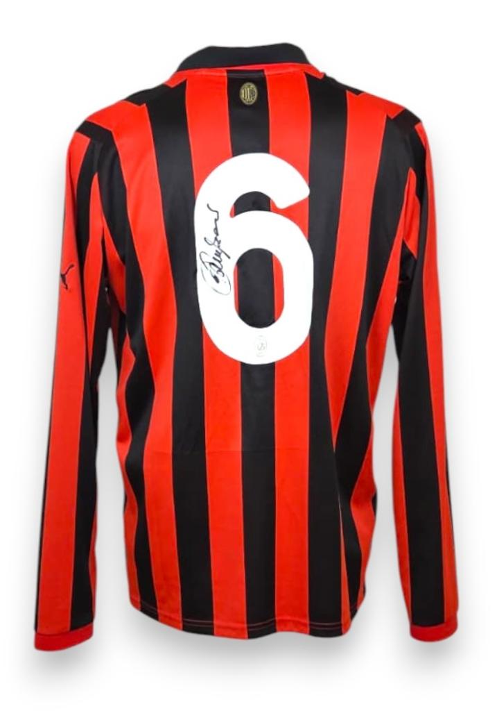 Maglia Home del Milan Autografata da Franco Baresi e realizzata per celebrare il 125° anniversario del club, reinterpretazione elegante e fedele della tradizione rossonera. Il design presenta le classiche strisce verticali rosse e nere, arricchite da un colletto a V dallo stile rétro e dalla speciale patch celebrativa “Milan Football and Cricket Club” applicata sul petto. Sul retro è presente il numero 6, simbolo eterno di Franco Baresi, impreziosito dalla sua firma autografa, elemento che rende questa maglia un pezzo da collezione di grande prestigio. Una maglia che unisce celebrazione storica, identità milanista e valore collezionistico in una versione firmata pensata per veri appassionati.