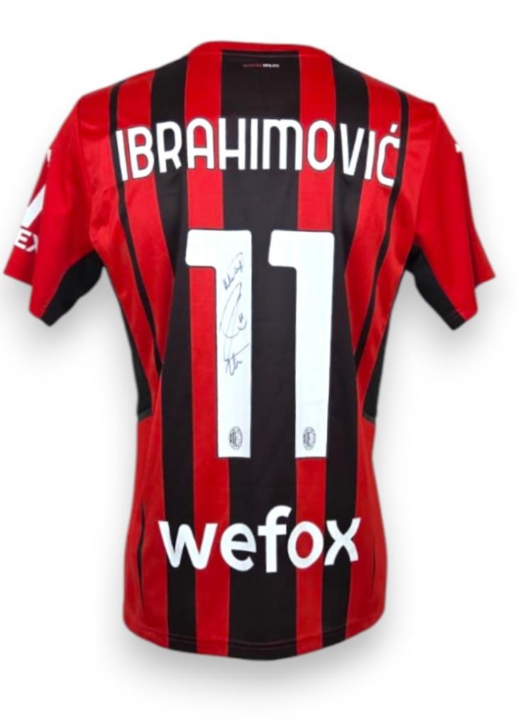 Maglia Home del Milan della stagione 2021-2022, autografata da Zlatan Ibrahimovic, caratterizzata dalle iconiche strisce rossonere reinterpretate con un design moderno firmato Puma. Lo stemma del club con stella celebrativa è applicato sul petto insieme allo sponsor tecnico Puma e allo sponsor commerciale Emirates Fly Better. Sul retro sono presenti nome e numero 11 di Ibrahimovic, impreziositi dalla firma originale del campione svedese, elemento che conferisce unicità e forte valore collezionistico al capo. Una maglia simbolo di una stagione memorabile, rappresentativa del ritorno al vertice del Milan e della leadership carismatica di uno dei suoi giocatori più iconici.