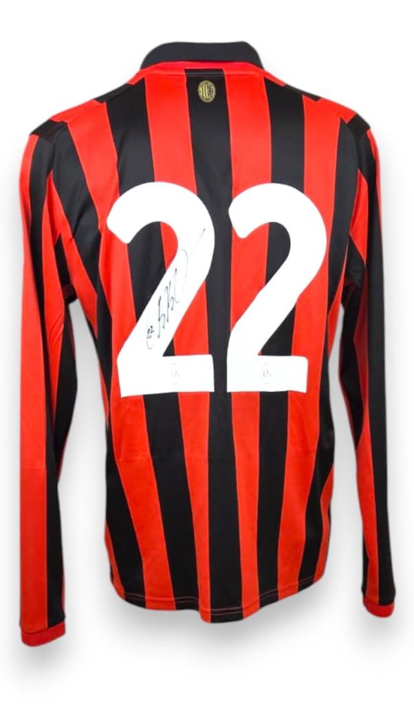 Maglia del Milan realizzata per il 125° Anniversario del club, autografata da Kaká, elemento che ne aumenta in modo significativo il valore collezionistico. Il design riprende le storiche strisce verticali rossonere, abbinate a colletto con scollo a V e dettagli celebrativi interni dedicati all’anniversario. Sul petto è applicato lo stemma speciale Milan Football and Cricket Club, affiancato dallo sponsor tecnico Puma, mentre il retro presenta il numero 22 con firma originale di Kaká ben visibile. Tessuto tecnico di alta qualità, pensato per offrire comfort e traspirabilità, con uno stile che unisce tradizione e modernità. Un pezzo esclusivo che celebra uno dei simboli più amati della storia rossonera.