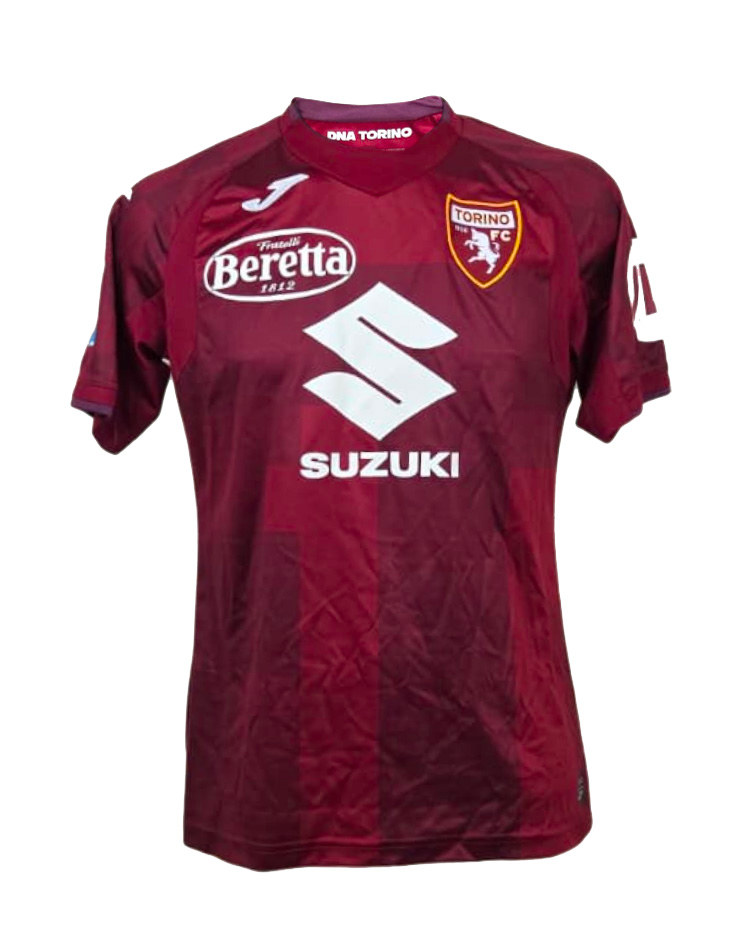 Maglia Home del Torino FC utilizzata nella stagione di Serie A 2024, nella caratteristica tonalità granata, con design moderno e texture tono su tono che valorizza l’identità del club. Il modello è prodotto da Joma e presenta lo sponsor tecnico sul petto, lo stemma Torino FC lato cuore e gli sponsor di stagione applicati frontalmente. Sul retro compaiono nome e numero 8 di Ivan Ilic, con patch ufficiale Serie A sulla manica e dettagli dedicati alla competizione. La maglia è Match Issued partita Torino-Verona, realizzata con materiali tecnici professionali e vestibilità da gara, rappresentando un pezzo autentico e di grande interesse collezionistico.