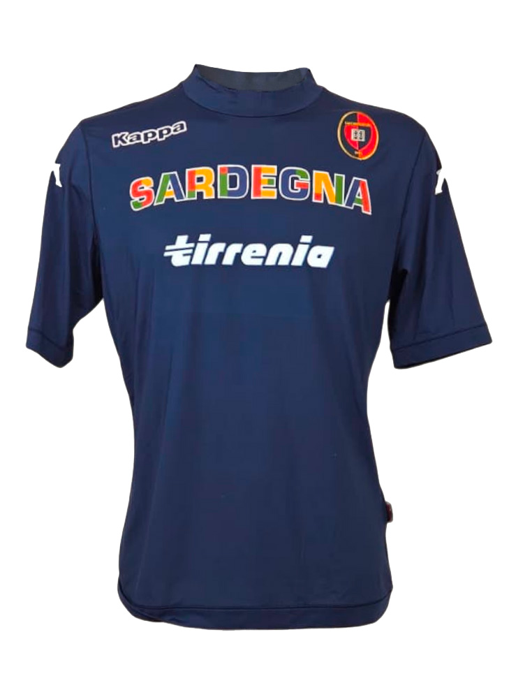 Maglia Third del Cagliari relativa alla stagione 2013-2014 di Serie A, player issued realizzata dallo sponsor tecnico Kappa e destinata all’utilizzo diretto in campo. Il design si distingue per la colorazione blu scuro compatta, scelta per la terza divisa ufficiale del club, impreziosita dallo stemma del Cagliari applicato sul petto e dal logo Kappa. Al centro campeggiano gli sponsor commerciali Sardegna e Tirrenia, elementi iconici di quell’annata. Sul retro sono presenti nome e numero Ibarbo 23, con applicazione ufficiale da gara, mentre sulla manica è applicata la patch Serie A TIM. Versione Player Issued, caratterizzata da vestibilità e materiali tecnici pensati per l’uso professionale, rappresenta una maglia significativa del percorso di Victor Ibarbo con la maglia rossoblù.