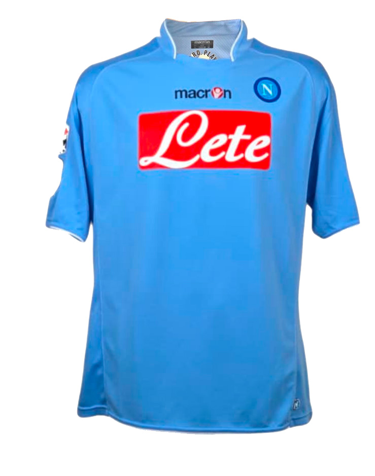 Maglia Napoli Home della stagione 2009/2010, versione player issued personalizzata Quagliarella 27. La divisa presenta il classico azzurro Napoli con colletto a giro rifinito da inserti chiari, sponsor tecnico Macron e sponsor commerciale Lete applicato sul fronte. Sul petto è presente lo stemma SSC Napoli, mentre sulle maniche compare la patch ufficiale della Serie A. Sul retro sono applicati nome Quagliarella e numero 27 nel font ufficiale dell’epoca. Versione Player Issued, realizzata con vestibilità e materiali tecnici da gara, pensata per l’utilizzo professionale in campo e caratterizzata da finiture di livello superiore.