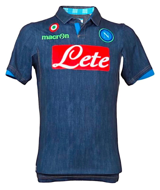 Maglia Napoli Away della stagione 2014/2015, indossata da Lorenzo Insigne nelle gare di Europa League, realizzata da Macron in versione Player Issued. Il design si distingue per l’inedita texture effetto denim, arricchita da colletto e finiture interne a contrasto in azzurro. Sul petto sono applicati lo sponsor commerciale Lete, il logo tecnico Macron e lo stemma SSC Napoli, accompagnati dal tricolore celebrativo. Sul retro compaiono nome e numero 24 di Insigne in verde fluo traforato, con patch ufficiale Europa League sulla manica. La vestibilità tecnica e i materiali leggeri esaltano il carattere professionale di una maglia iconica e molto ricercata, simbolo dell’innovazione stilistica del Napoli in ambito europeo.